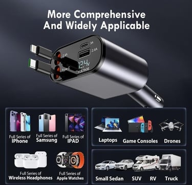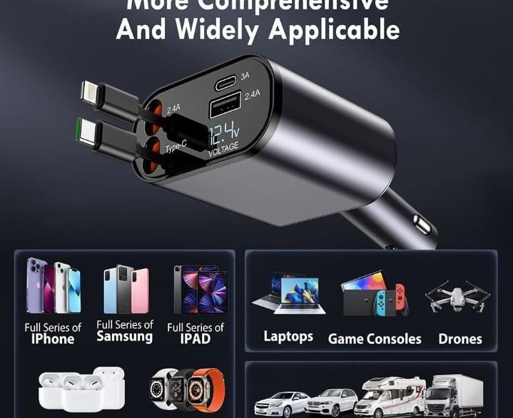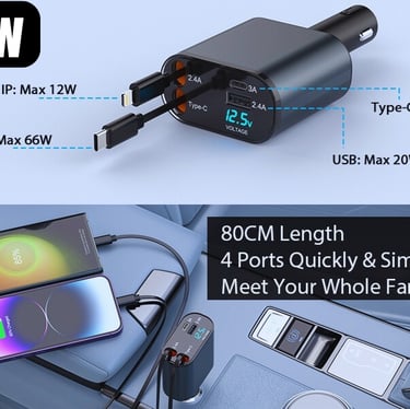 .Chargeur voiture rapide rétractable 4-en-1 - Dites adieu aux câbles encombrants !
